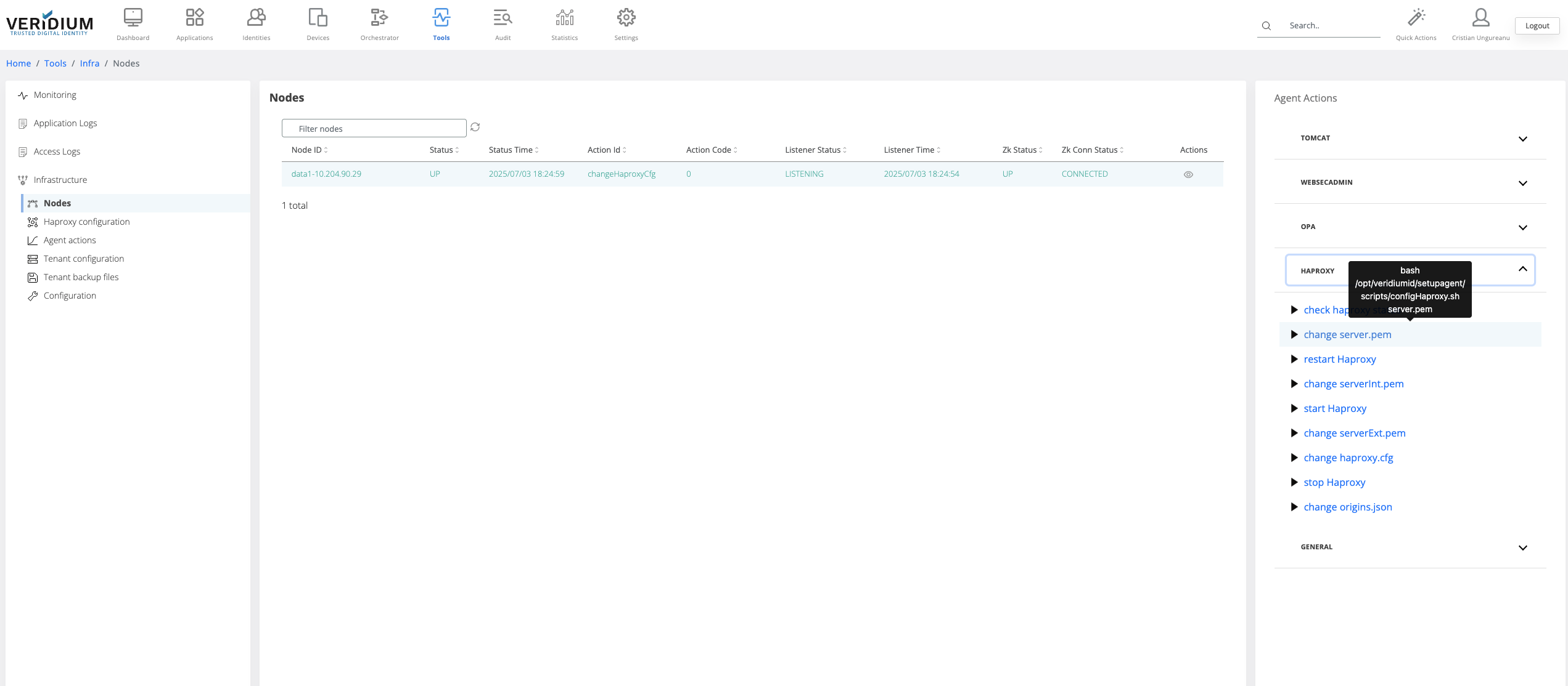 Navigate to Tools → Nodes and execute the command that will do the change for that variable. For example, if a certificate is reverted, execute the “change haproxy.cfg” command for the webapp nodes.