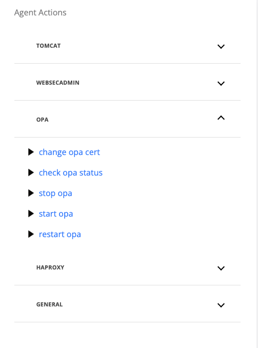 On the right hand side in the Agent Actions select the category of the service where the action is required
