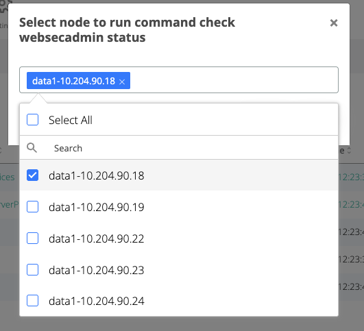 A pop-up will be displayed. Select from the drop-down field the all webapp nodes and click on Run