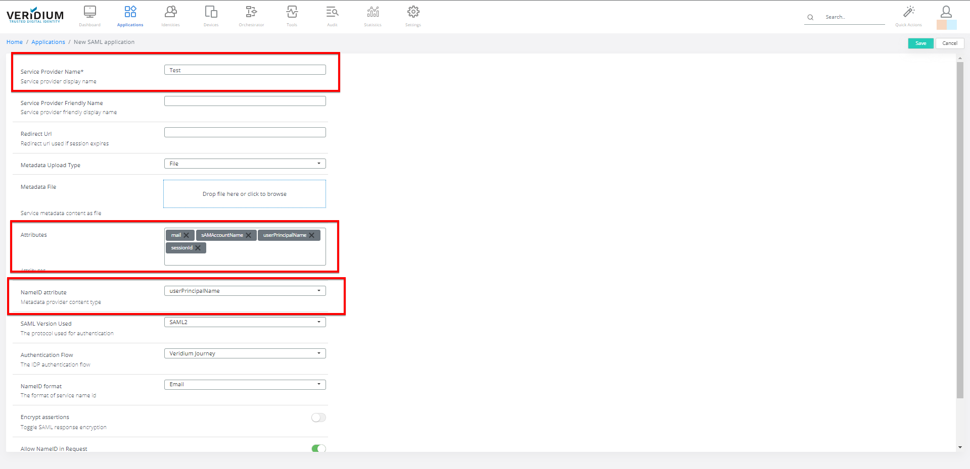 6. For 'NameID attribute', select userPrincipalName.