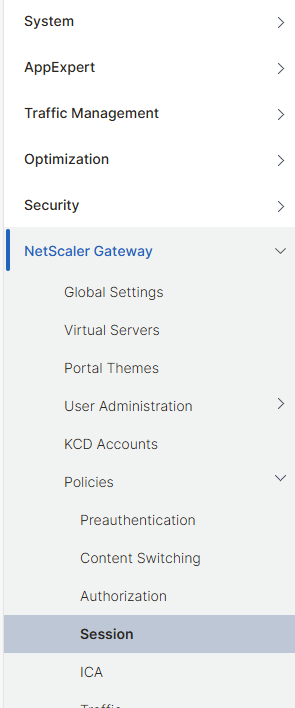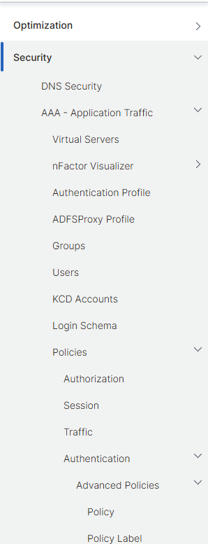From the main Netscaler menu, click on Security->AAA Application Traffic->Policies->Authentication->Advanced Policies: