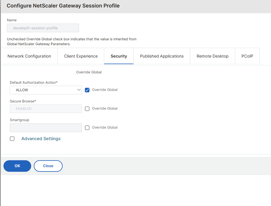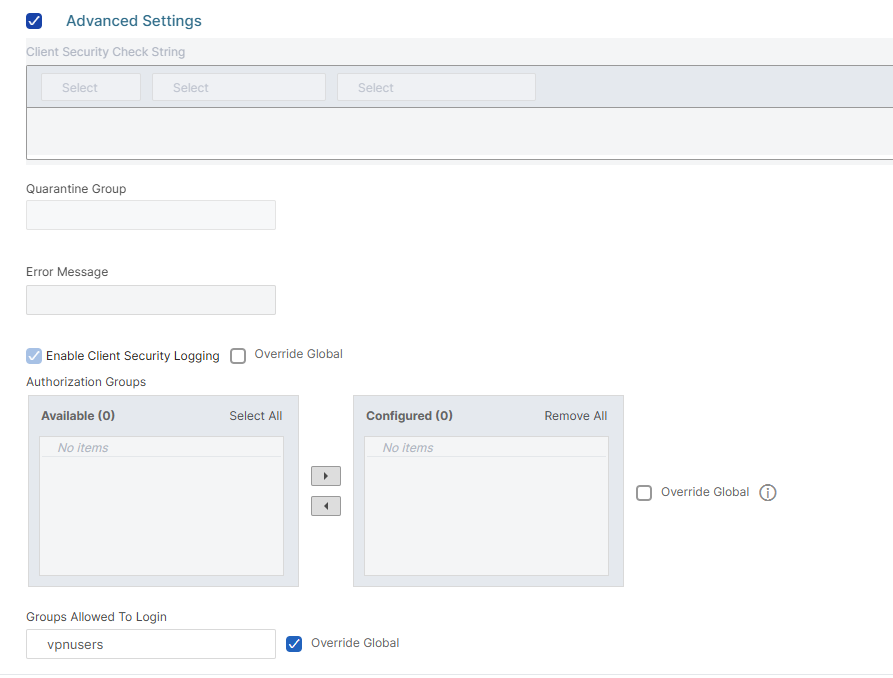 Scroll down and, in the Groups Allowed To Login field, type the group (or groups, separated by a column or semi-column) which are allowed to access the resources published by this session policy: