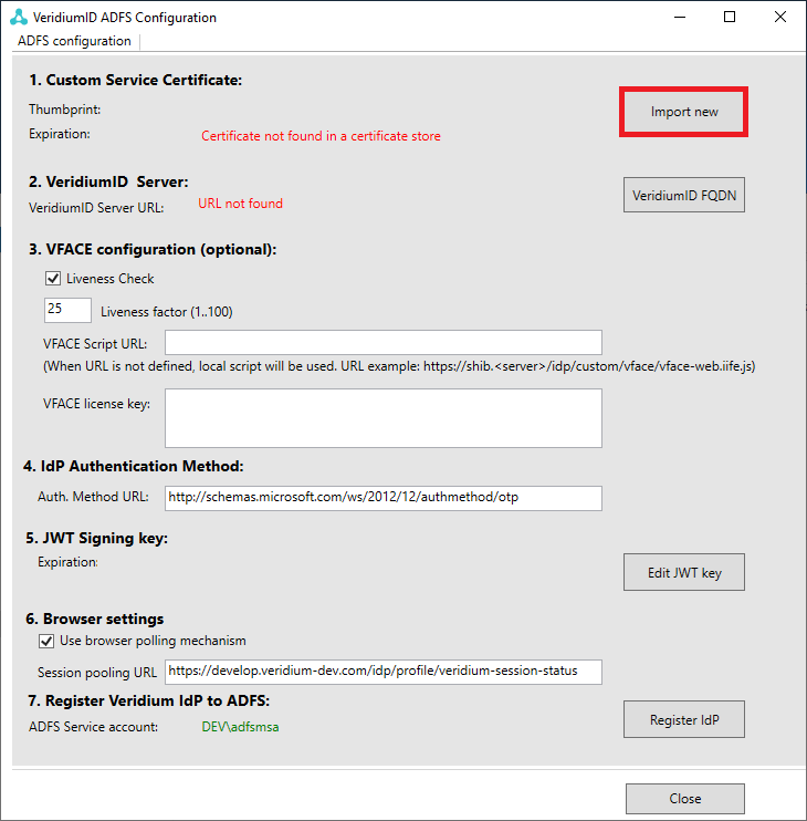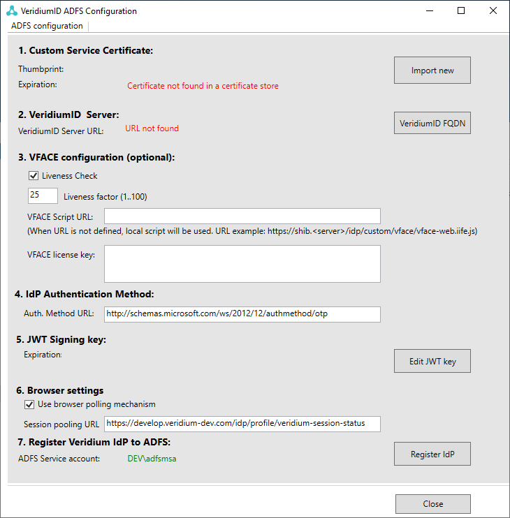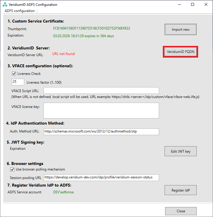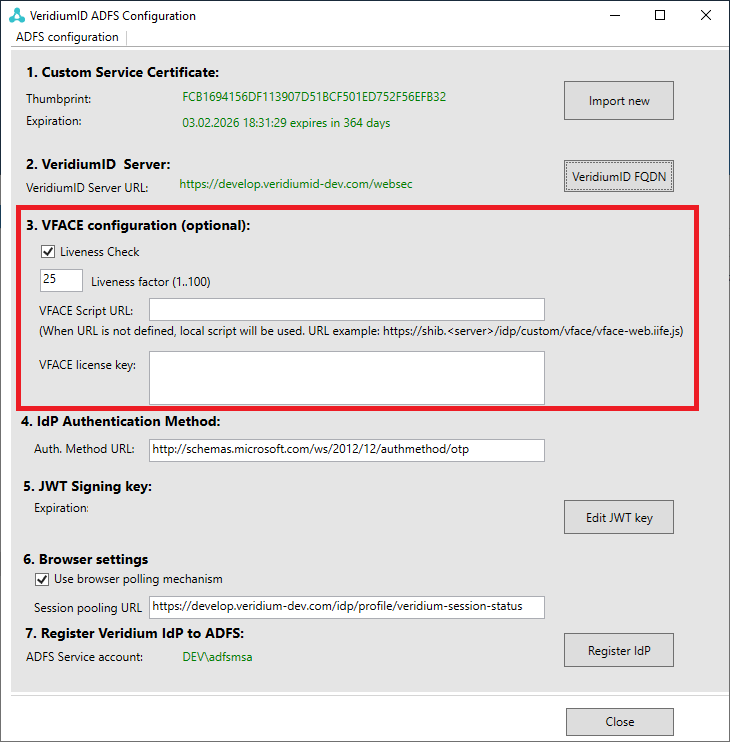 Please enter the VFACE Script URL. Default script is in the value URL: â<https://<VeridiumServerURL>>/idp/custom/vface/vface-web.iife.jsâ