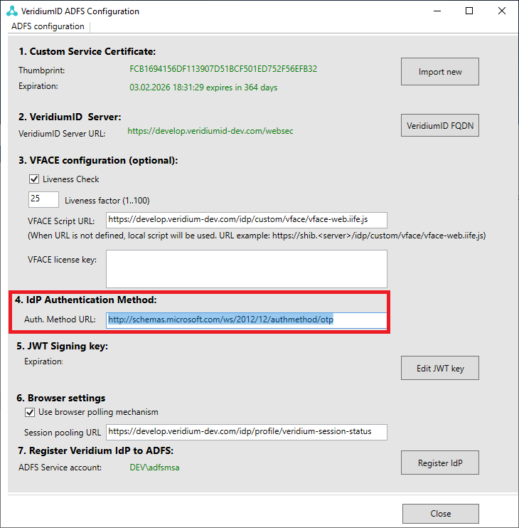 IdP Authentication method Configured claim is added to the resulting token when Veridium authentication is successfully passed. The default value is: âhttp://schemas.microsoft.com/ws/2012/12/authmethod/otpâ