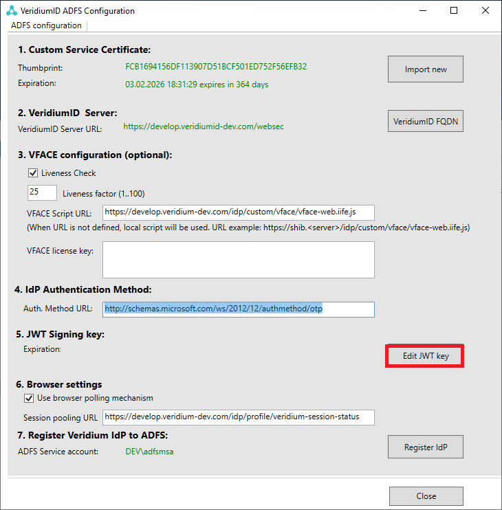 Copy and paste "JWT signing key" from the chapter https://veridiumid.atlassian.net/l/cp/Hyv3qV0h