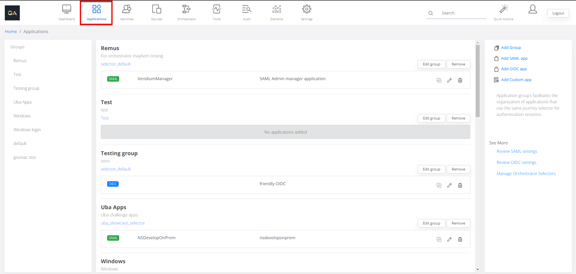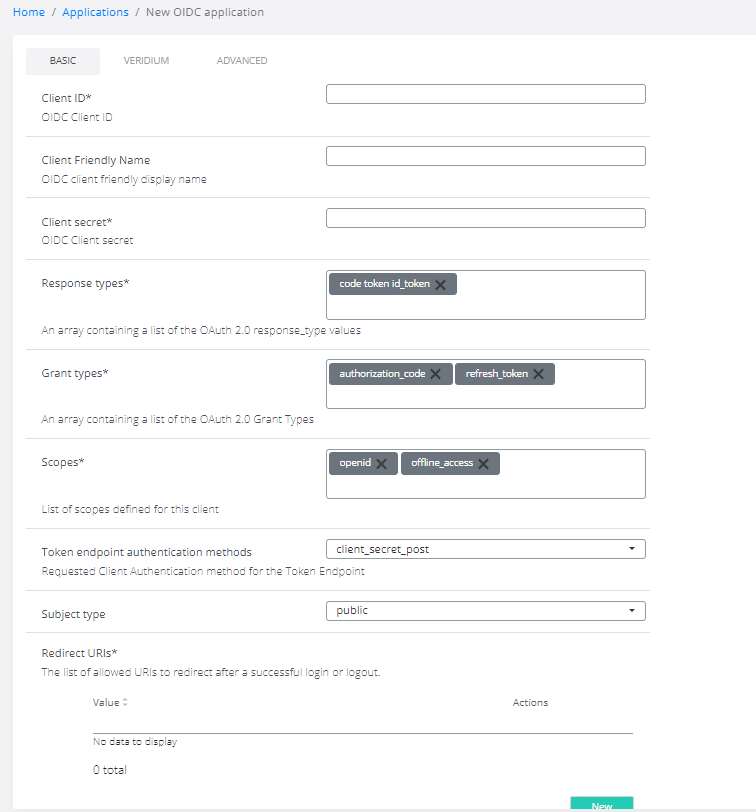 In Veridium Manager, click Applications.