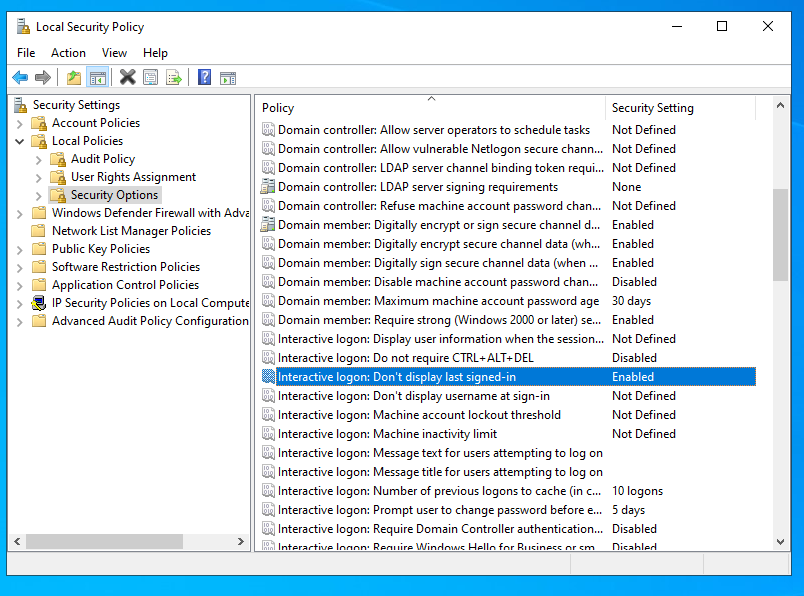 On the computer you are connecting to, you must access the local security policy tool by running secpol.msc, then go to Local Policies->Security Options and set Interactive logon: Don’t display last signed-in to Enabled: