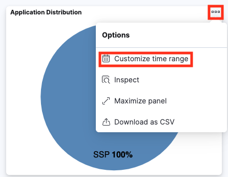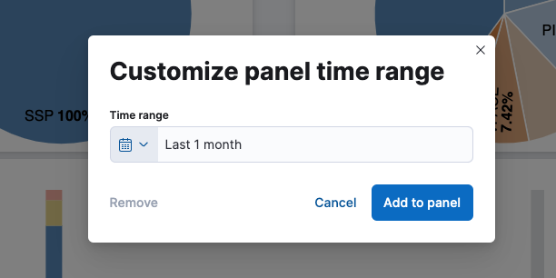 The time range for a panel may be changed from the “Customize time range button”. A popup appears that allows setting a new time range which overwrites the dashboard’s global time range.