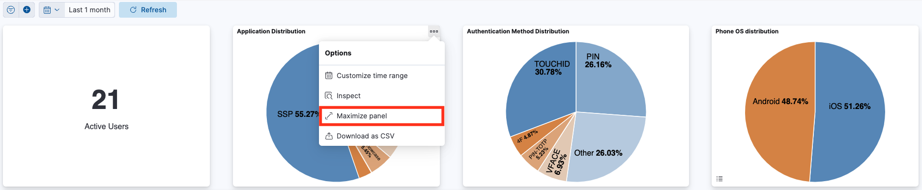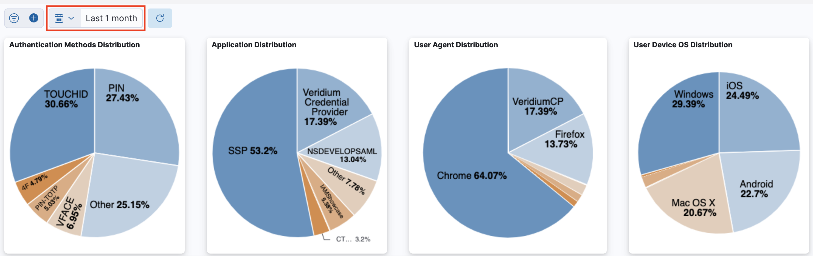 Each dashboard has a global time range. Each chart in the dashboard only shows data about authentication sessions performed during this time range.