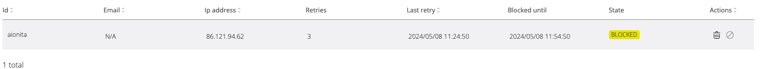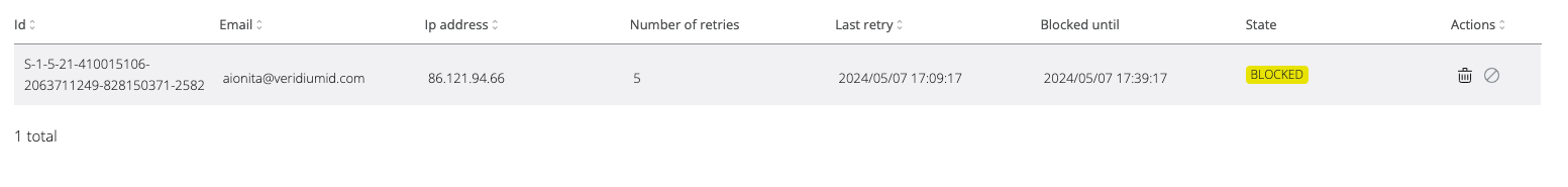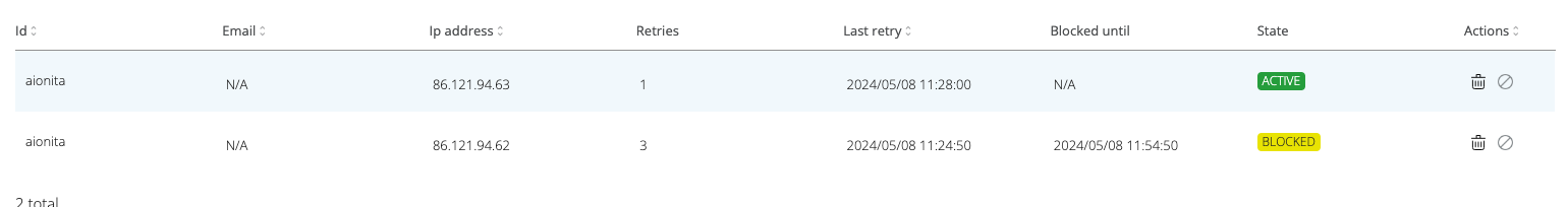 In the photo above, the status is ACTIVE because the user-IP combination has not reached the maximum number of failed attempts.