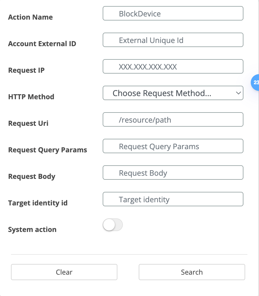 Select the System Action toggle to display all user-generated records.