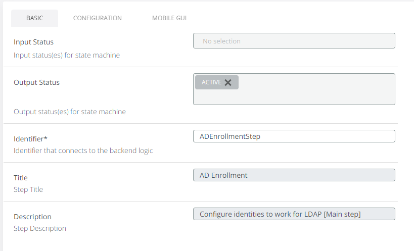 Identifier | Identifier that connects to the backend logic | ADEnrollmentStep |