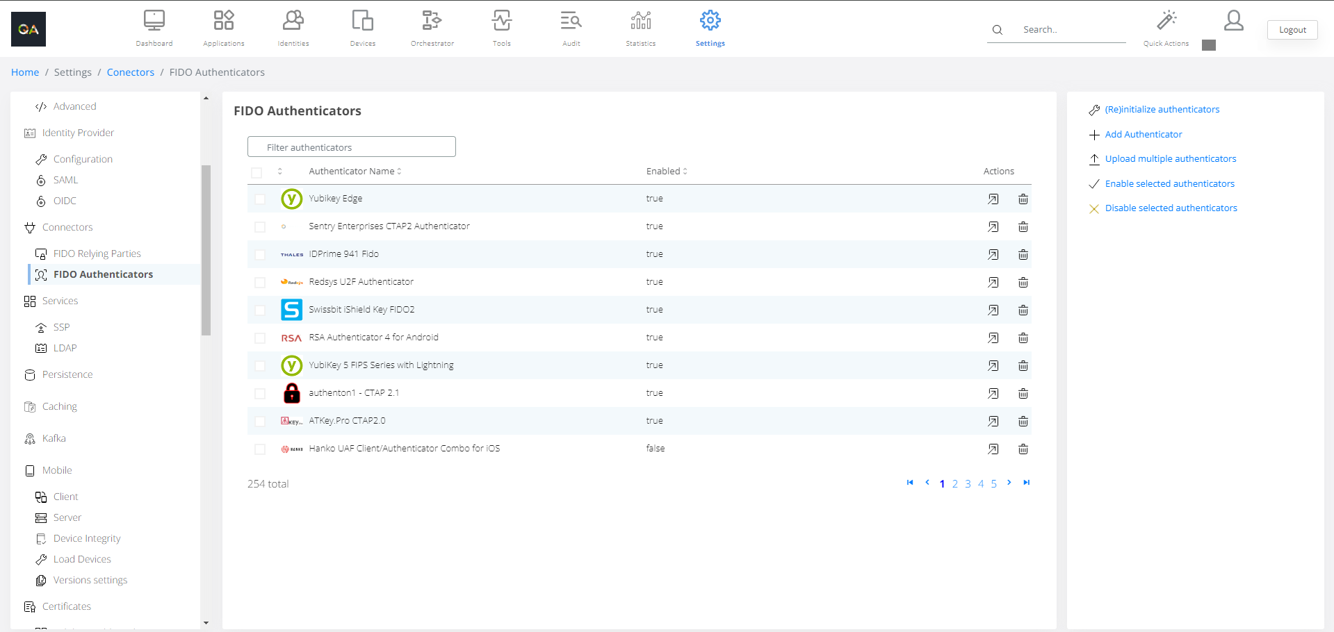 There is also an option to delete selected authenticators. This button will be visible when selecting at leas one authenticator for the list