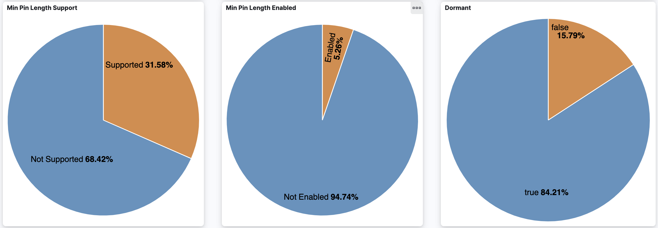 The “Min PIN length enabled” is a pie chart which shows the distribution of FIDO devices that have the Min PIN length extension enabled
