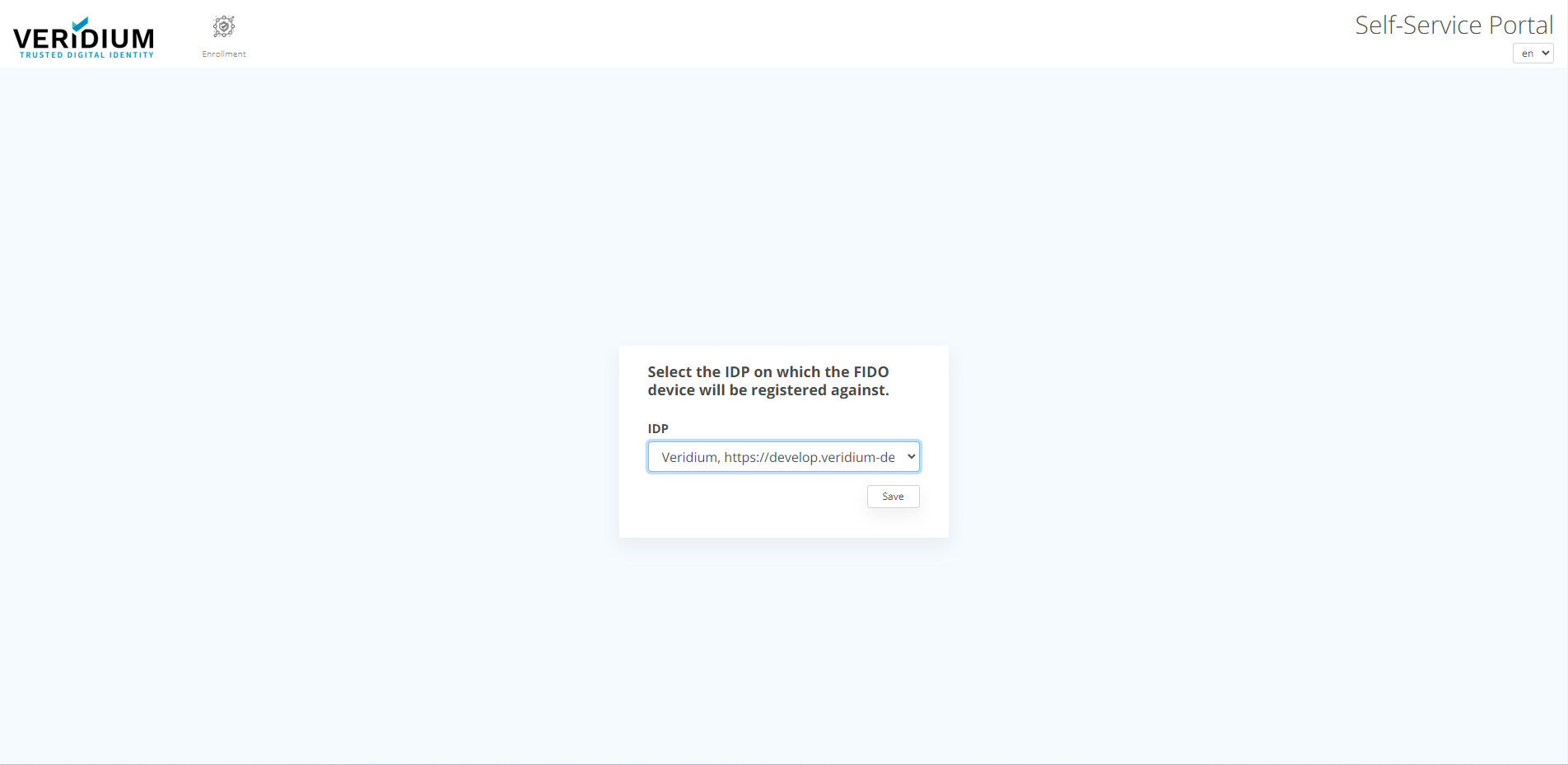 Go to VeridiumID Self-enrollment and click on "FIDO".