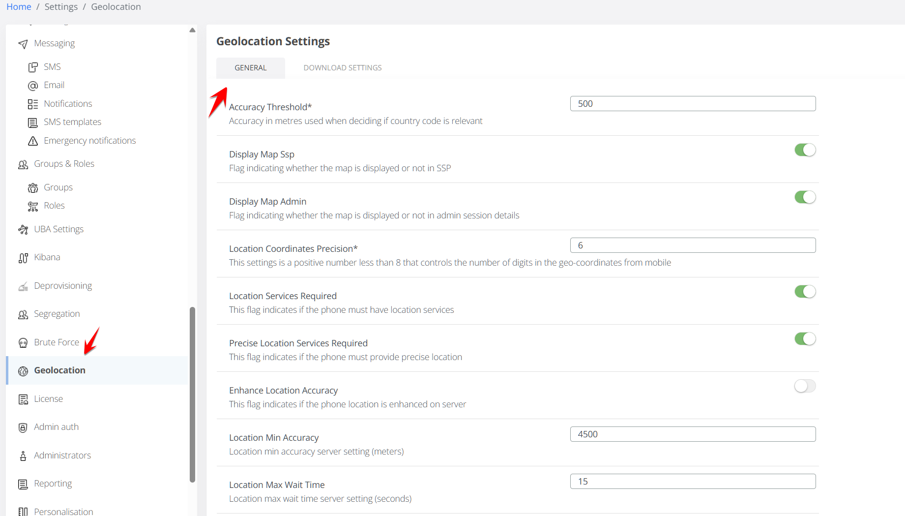 Geolocation - Download Settings Tab: