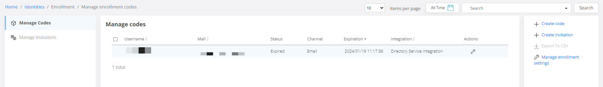 This will enable all functionalities from invitation code feature that are under Identities → Enrollment → Manage enrollment codes