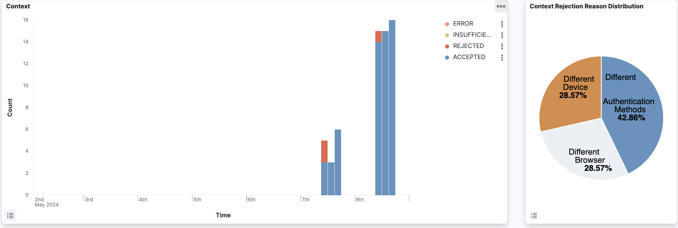 Authentication Method distribution is a pie chart which shows a overview of how many authentication sessions were created using each combination of authentication methods.