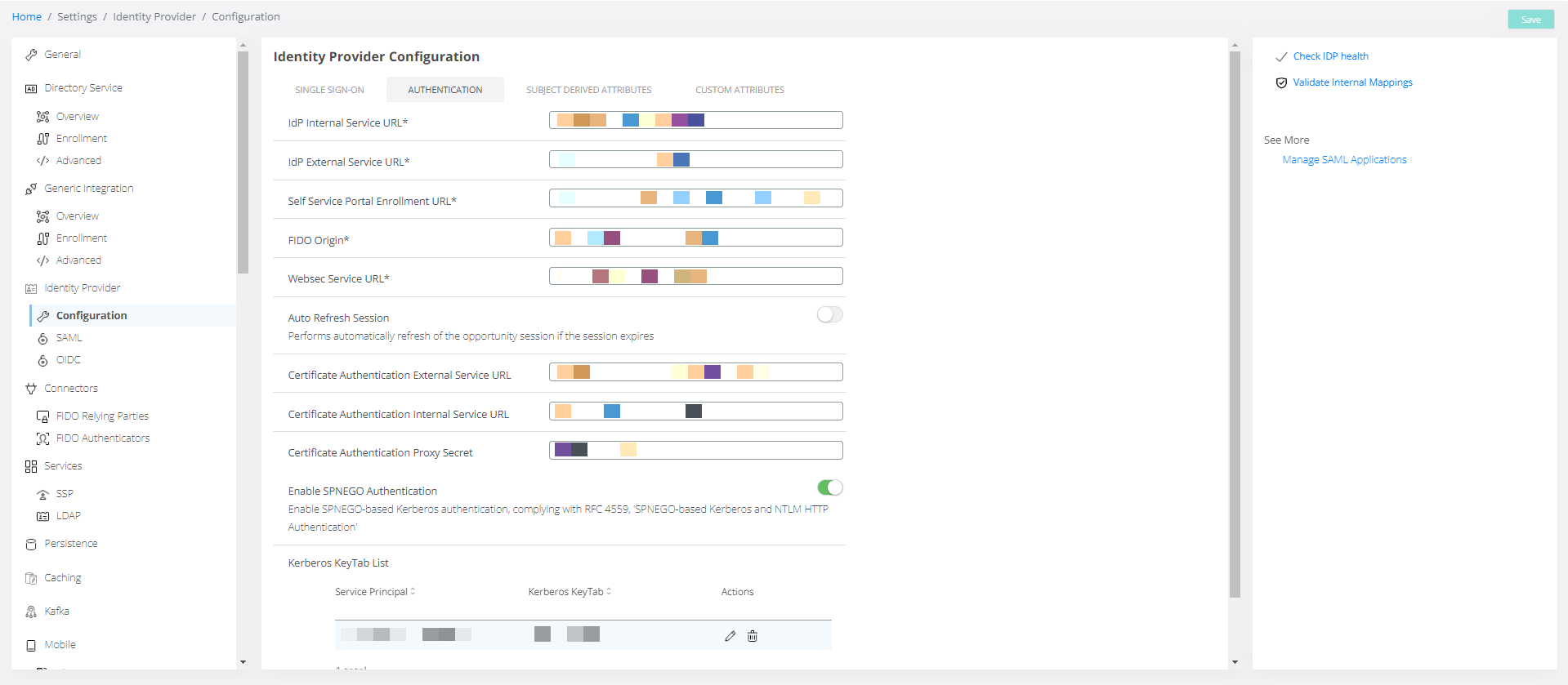 Session Timeout | The idle time for the IdP session. The value must be at least as long as the Authentication Default Lifetime. | PT24h |
