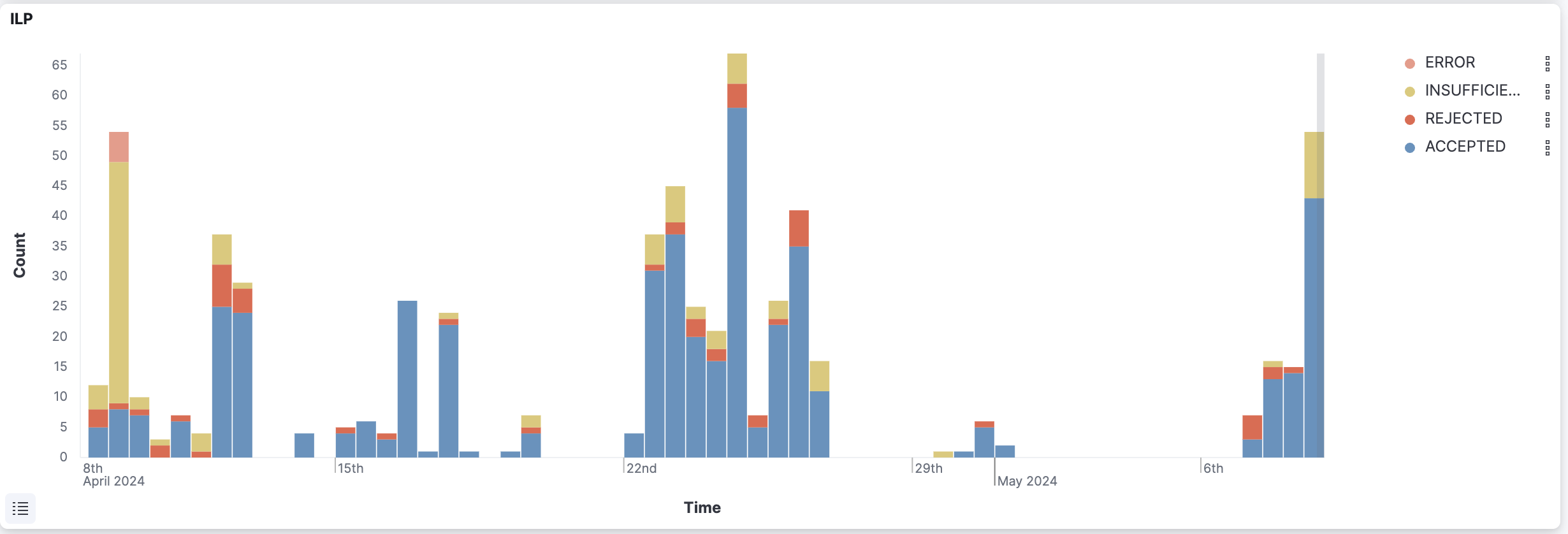 This chart is a bar chart which shows the ILP result for the authentication sessions with ILP enabled.