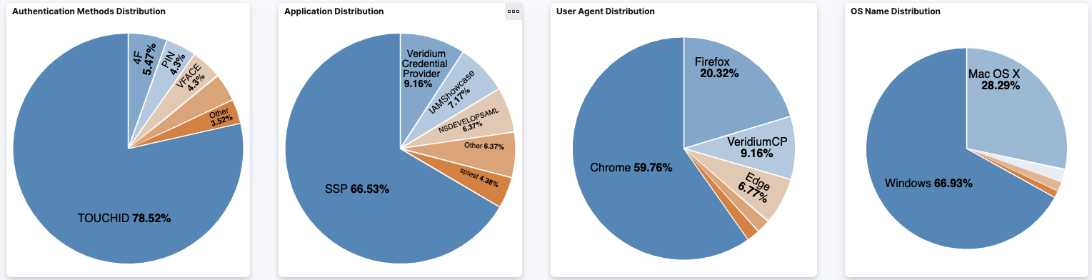Authentication Method distribution is a pie chart which shows a overview of how many authentication sessions were created using each combination of authentication methods.