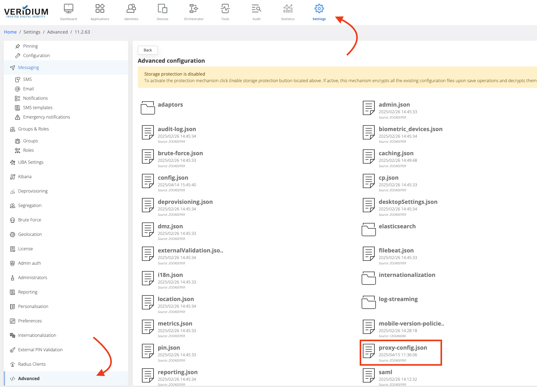 9.3) Configure proxy (if you are using one - OPTIONAL) in WebsecAdmin (Settings → Advanced → proxy-config.json) to maintain the traffic internally (where ilpdevelop.veridium-dev.com is the domain you are using for UBA)