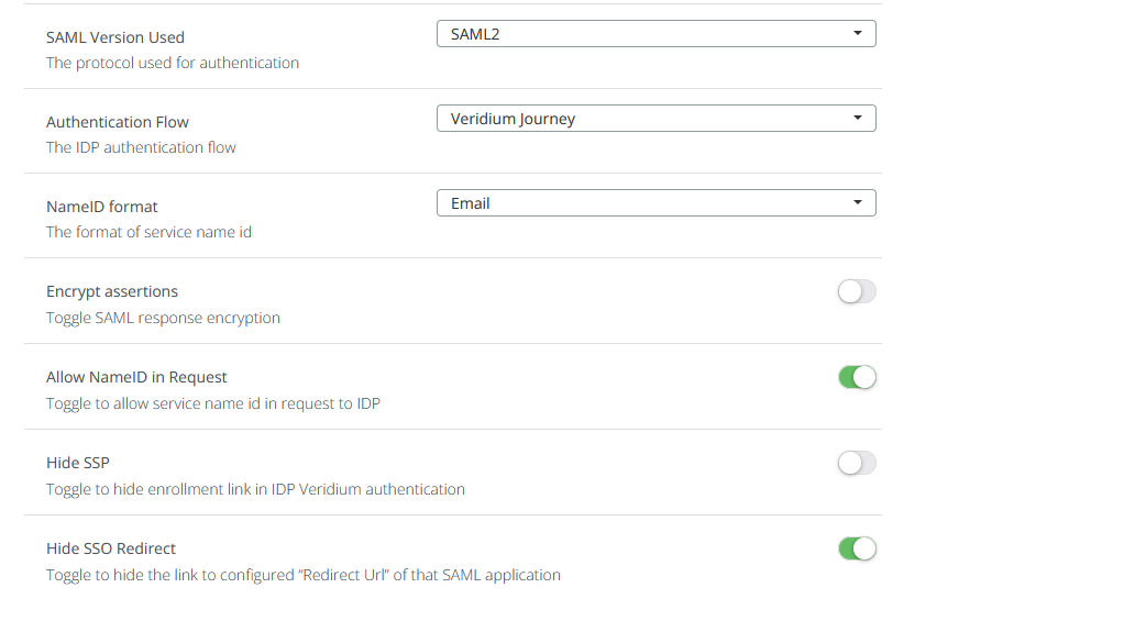 The final step is creating the Service Provider for Cisco in VeridiumID dashboard. Access Applications->Add SAML app and create a SP like in the following example: