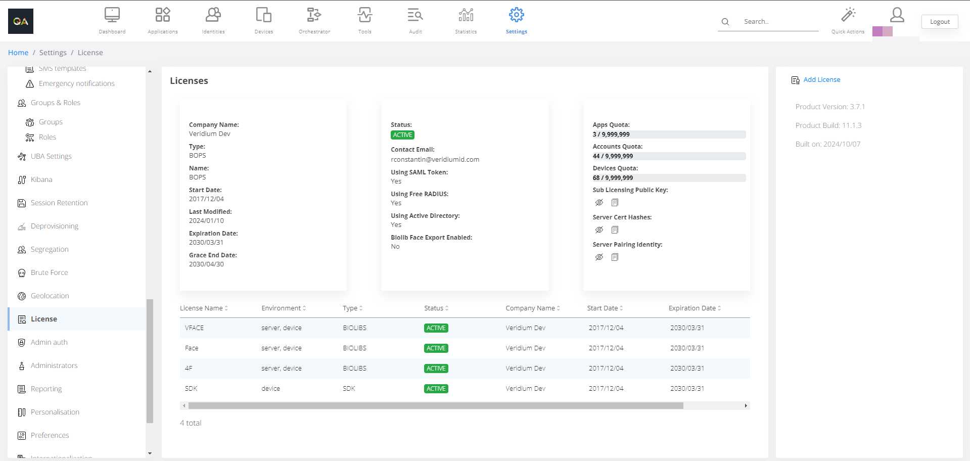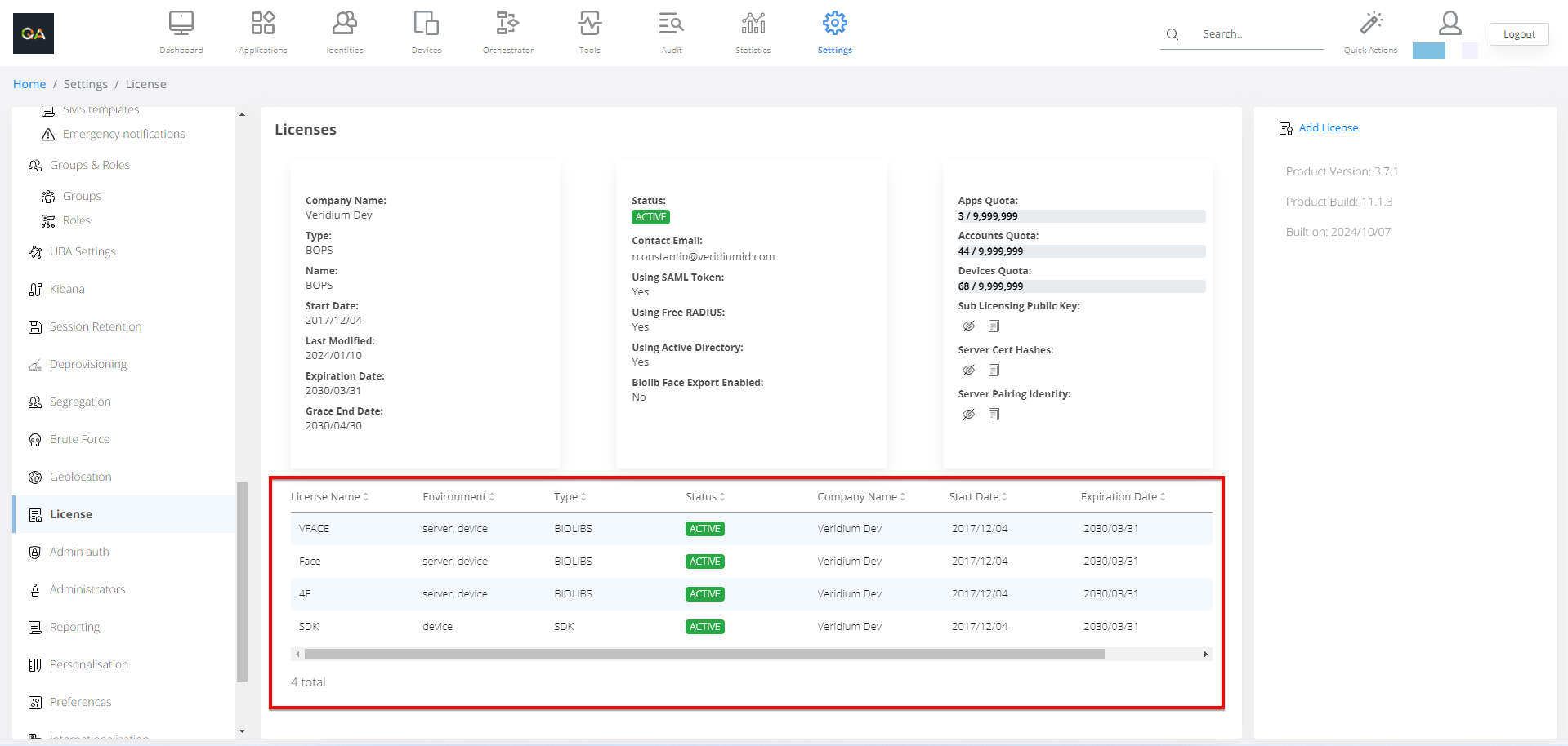 In the table bellow is a list of issued licenses and details about licenses. Start date and Expiration date is important.