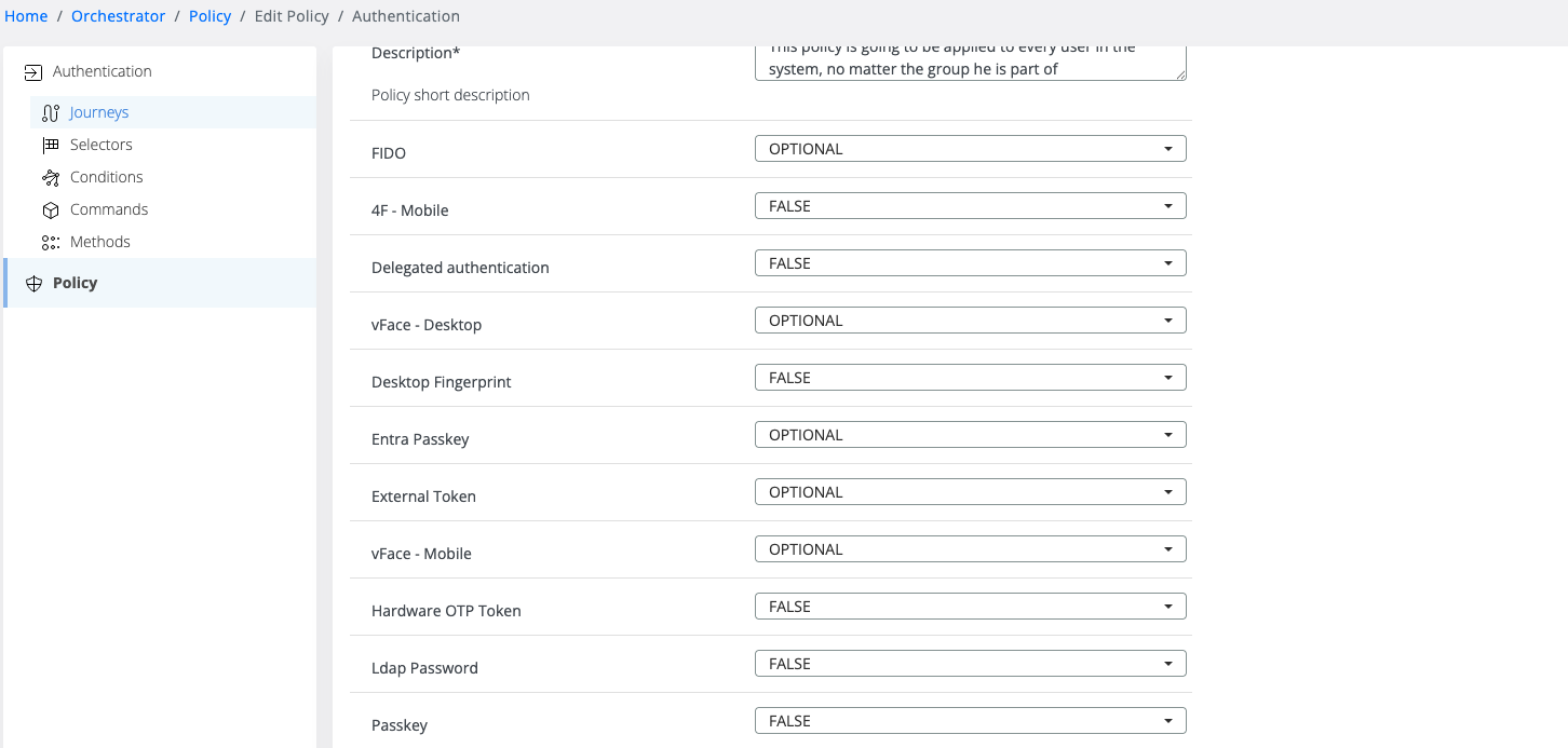 Once the configuration of Microsoft Entra integration is completed, the Entra Passkey policy may be enabled for the users.