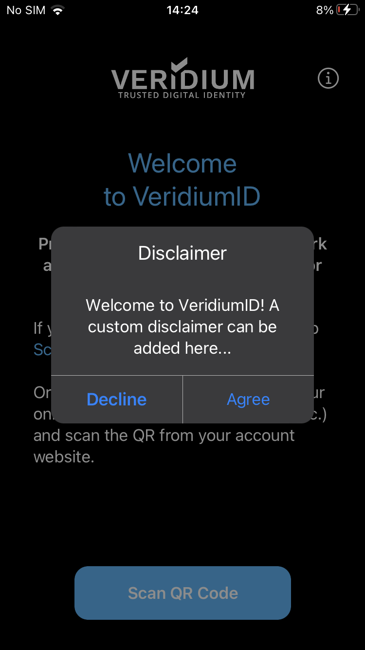 , and scan the QR from VeridiumID Self-enrollment page using the.