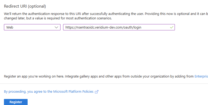 Create an OIDC app for Netscaler in the EntraID portal (instead of defining Netscaler as a service provider in the Veridium Manager)