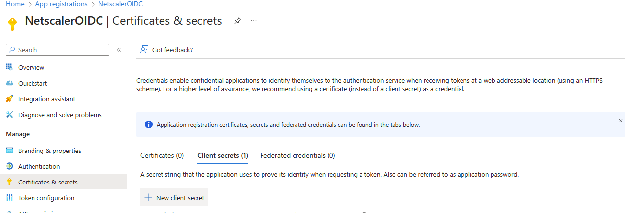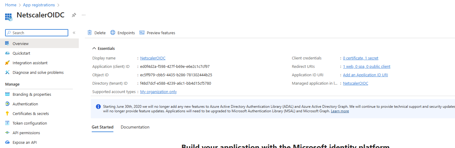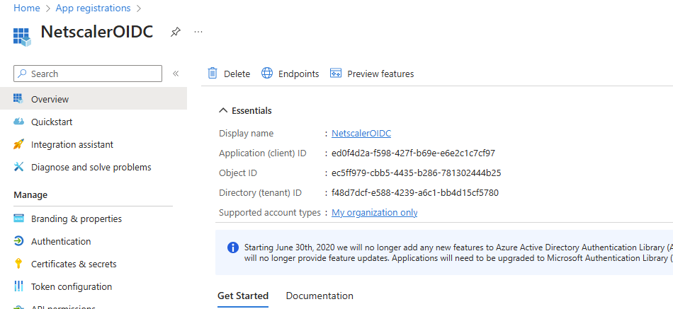 In the main Entra window click on Overview and save the Application (client) ID. You’ll need this value in the Netscaler configuration: