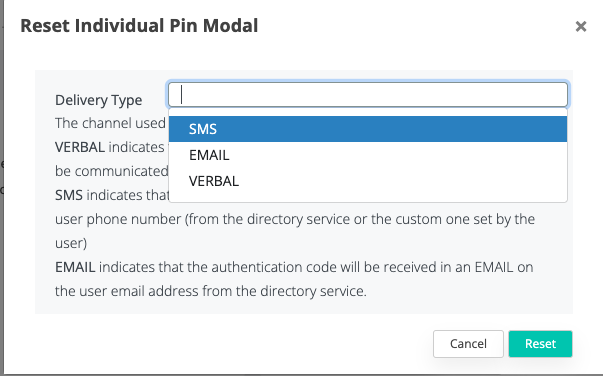 The channel to send this pin can be configured to Verbal, SMS or Email (a new notification template has been added - “RESET_INDIVIDUAL_PIN”).