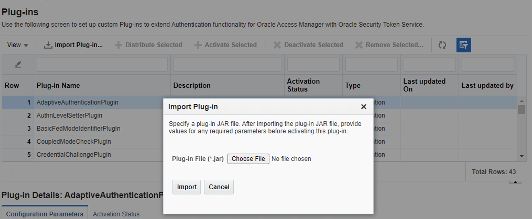 Go to Oracle Access management Console → Authentication plug-ins → Import Plug-in