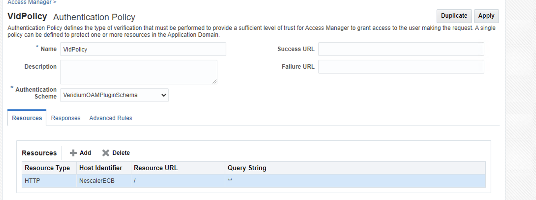 As you can see, we specify what resource should this policy protect and the Authentication Scheme that we just created
