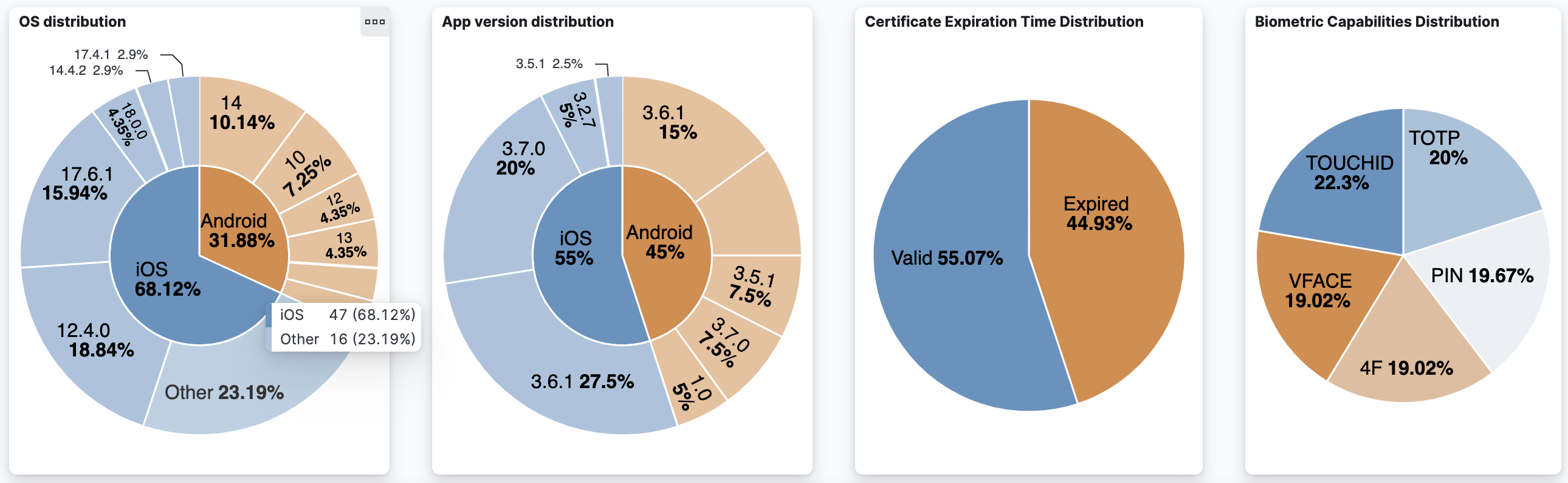 The “OS distribution” is a multi-layer pie chart which shows the distribution of OS names and versions for the currently registered devices