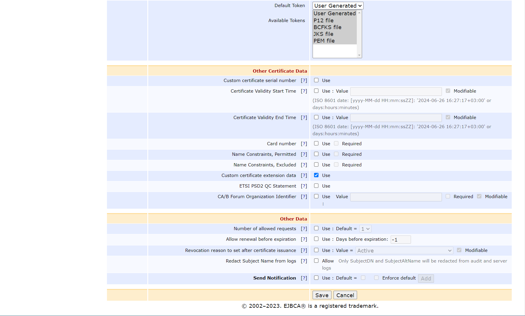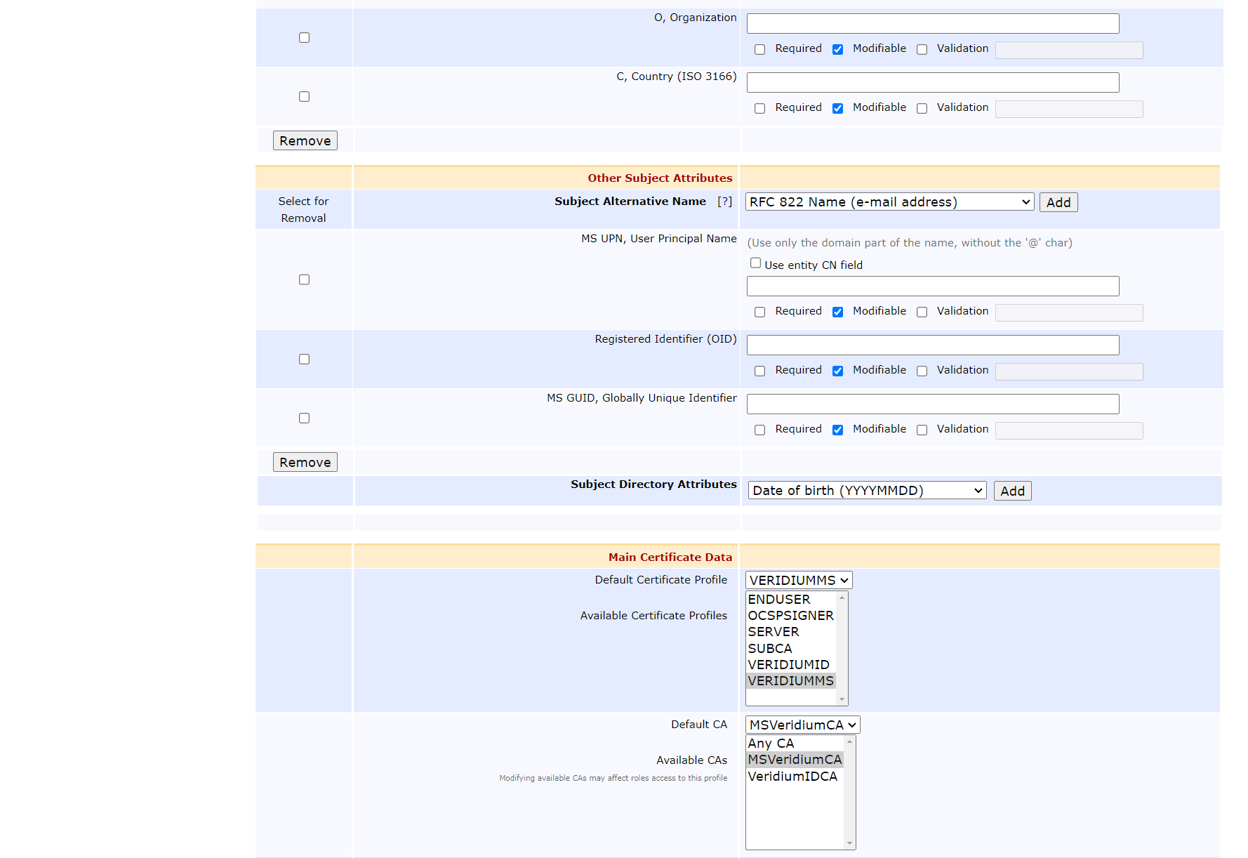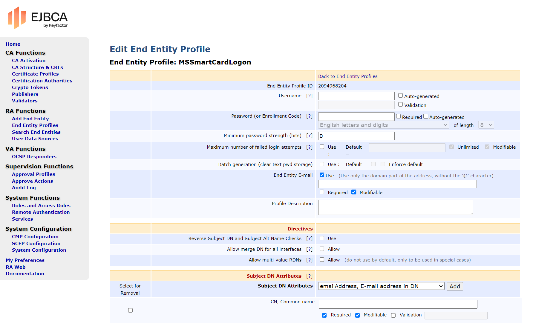 RAEP - EJBCA End Entity Profile configuration