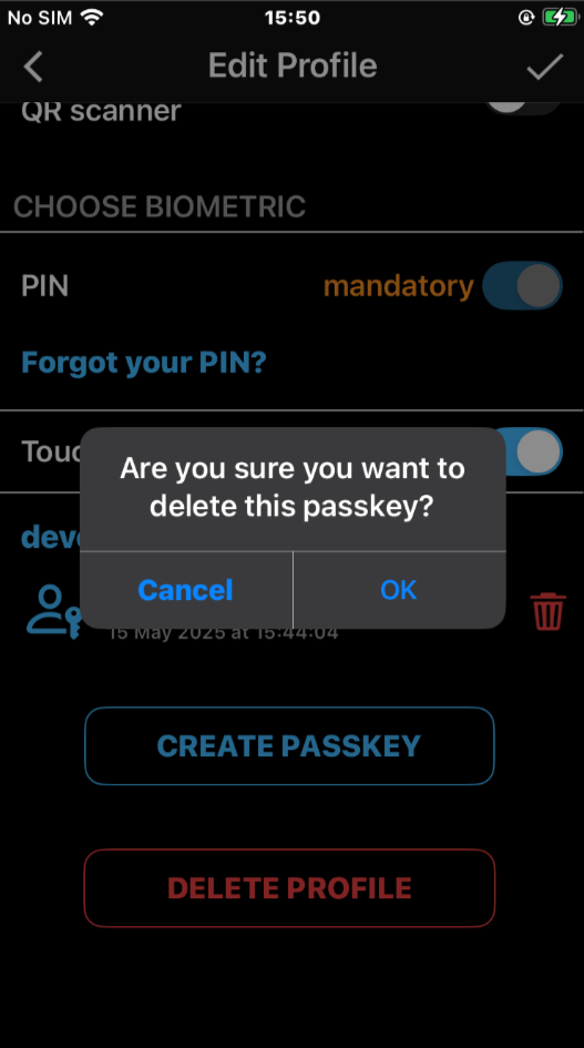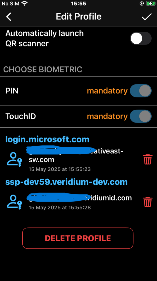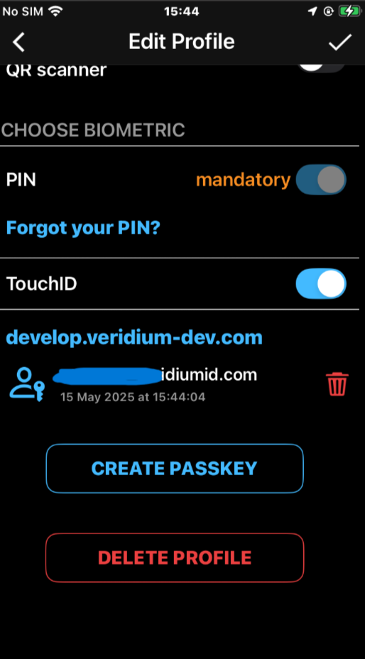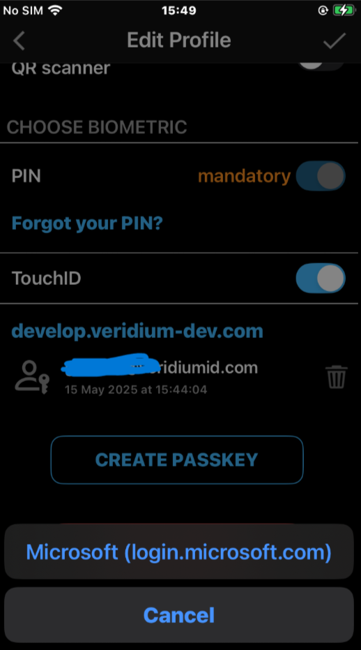 visibility in Edit Profile section of the mobile apps, for both Veridium and Entra enrolled passkeys: