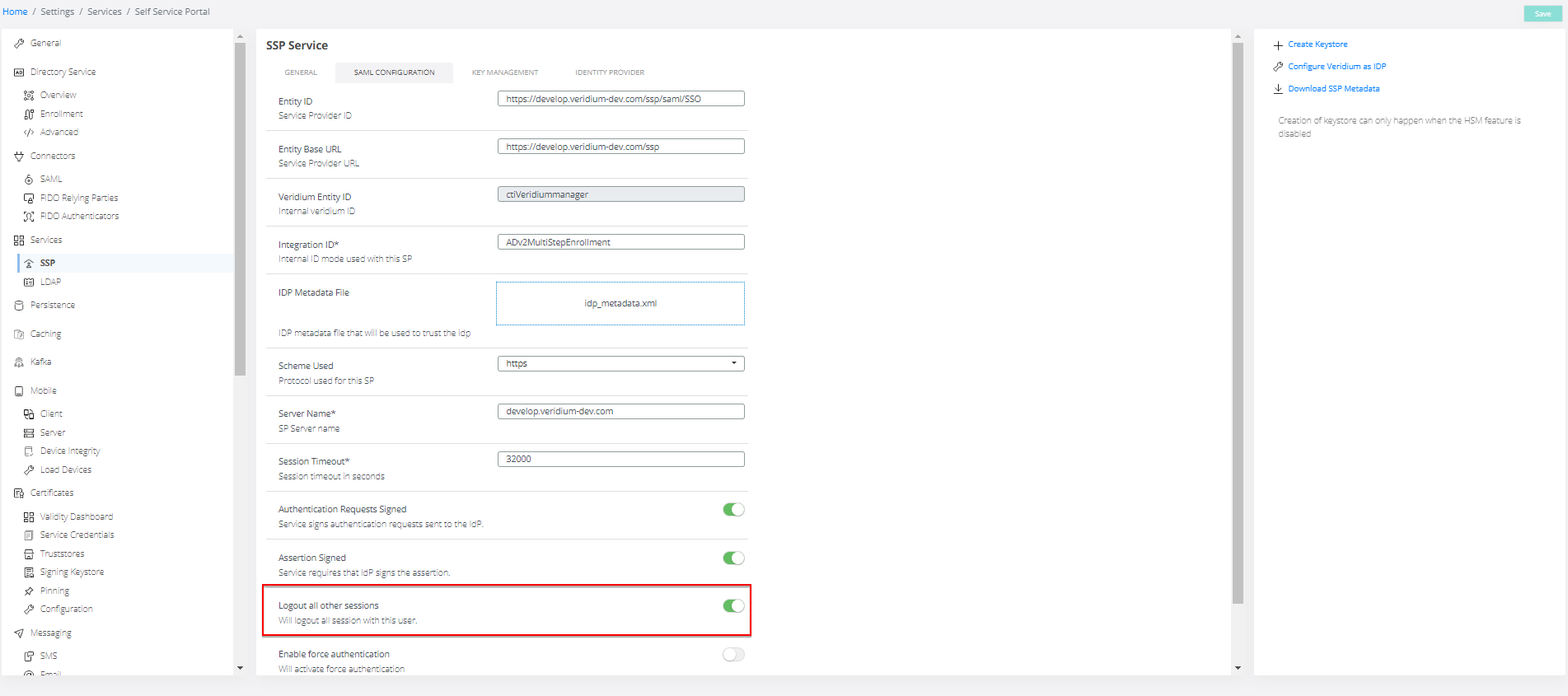 Enable SLO endpoints in the metadata in Veridium Manager:
