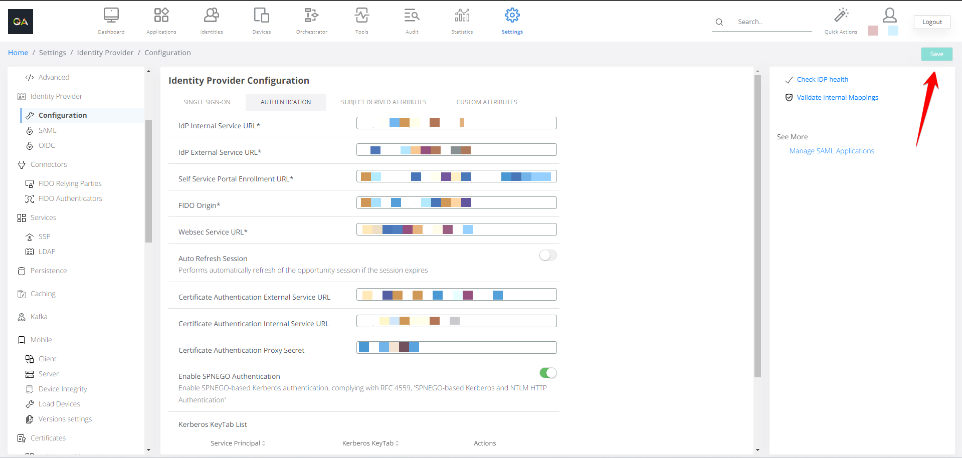 Navigate to Settings / Identity Provider / Configuration/ Authentication