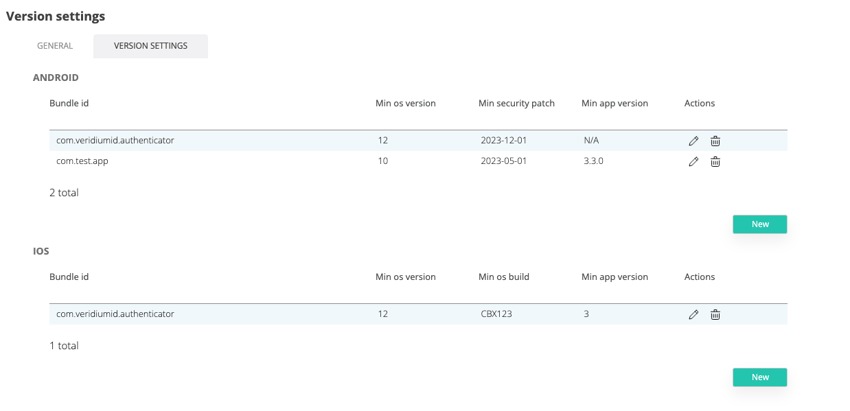 Second tab is for version settings, where you can set version enforcement for different bundles and specific for each operating system.