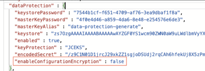 Important: There is another enabled property within the Data Protection configuration that controls Cassandra data encryption. It is independent of the enableConfigurationEncryption setting for Zookeeper. You can have Cassandra encryption disabled (enabled: false) and still have Zookeeper configuration encryption enabled (enableConfigurationEncryption: true).