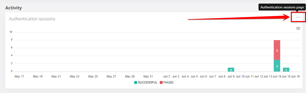 Clicking the three dots from the right top of the chart, will redirect to Authentication session page.