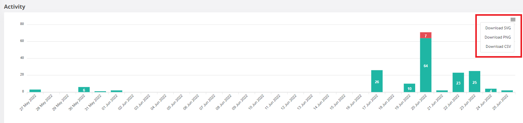 Highlighted area allows export data in SVG, PNG or CSV format.