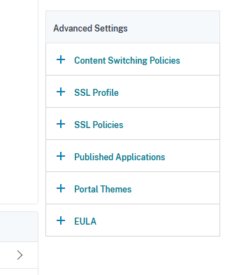 In the Netscaler web interface, access the virtual server settings by clicking on Citrix Gateway → Virtual Servers, then click on the previously created virtual server: