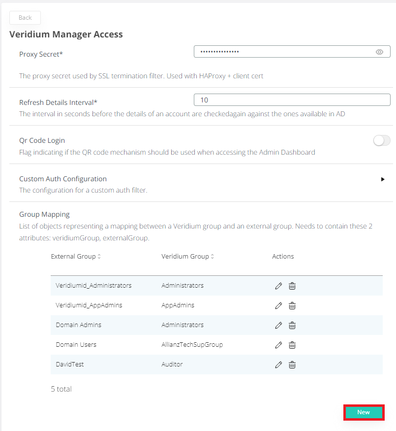 Enter External Group name, and Veridium Group