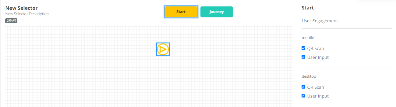 Edit the selector’s properties in the configuration pane that contains the name, description and status displayed on the top-left side.