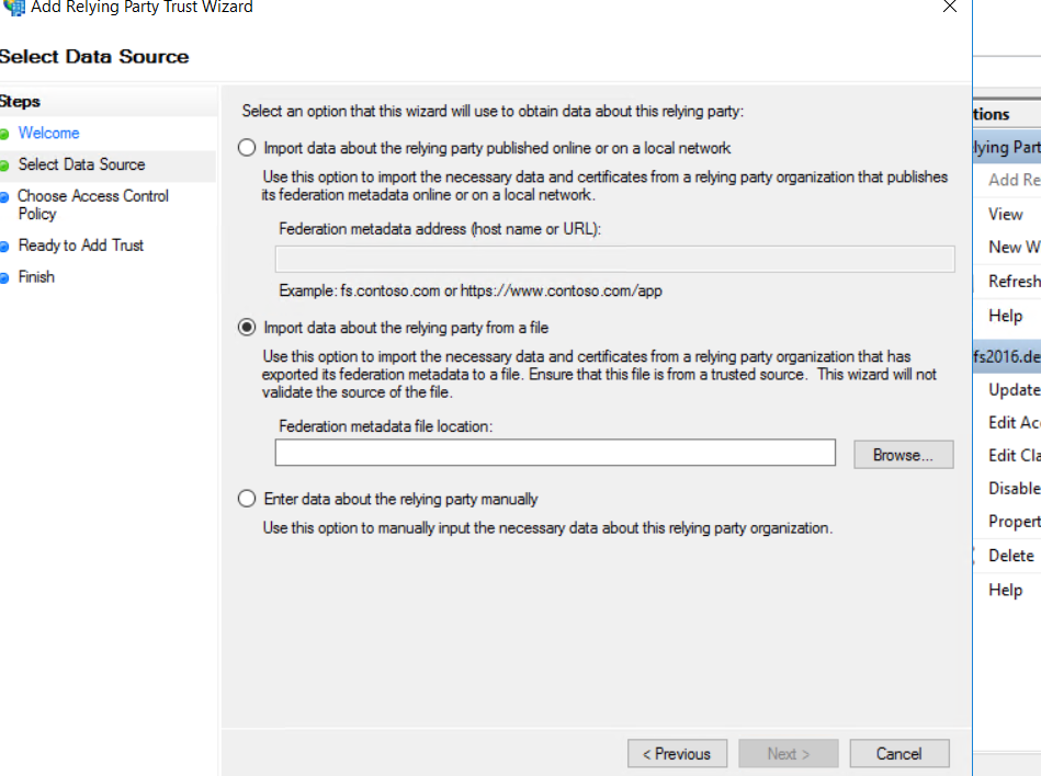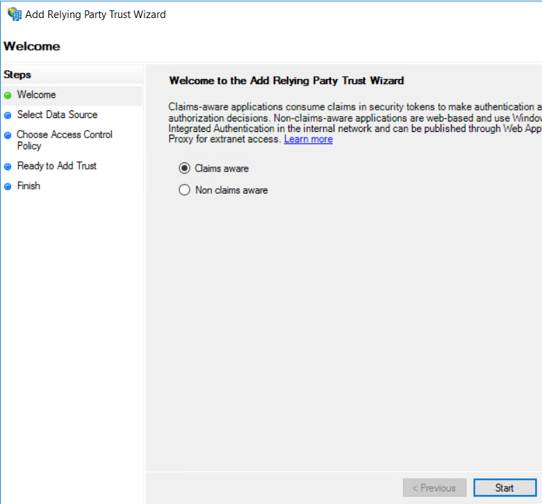 Veridium Self Service portal offers the possibility of using a different IDP from Shibboleth. In this article we’ll be focusing on using ADFS as an identity provider. In order to achieve this, you must define a relying party trust in the ADFS server by performing perform the following procedure: