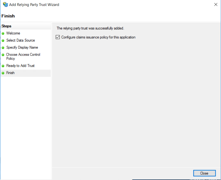 The final step is to disable certificate revocation check by ADFS. Go to a Powershell window an execute the following command(type in the appropriate relying party trust name):