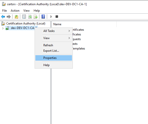 Access your internal PKI server and open the Certification Authority management console (Start->type certification authority and click enter):